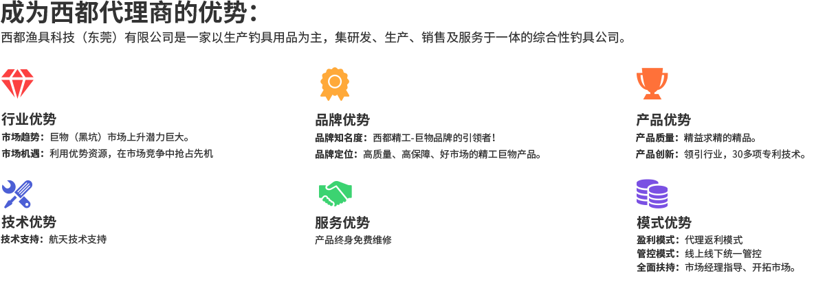 西都漁具科技(東莞)有限公司是一家集釣具用品為主,集研發(fā)、生產(chǎn)、銷(xiāo)售及服務(wù)于一體的綜合性釣具公司,自2019年6月成立以來(lái),經(jīng)過(guò)5年的發(fā)展,已成為中國(guó)釣具知名企業(yè),公司總部位于東莞萬(wàn)江,擁有強(qiáng)大的生產(chǎn)基地和物流倉(cāng)儲(chǔ),主要從事魚(yú)鉤、魚(yú)線(xiàn)、釣竿、餌料及各類(lèi)配件的研發(fā)及生產(chǎn),在團(tuán)隊(duì)的共同努力下,公司取得了超過(guò)20項(xiàng)國(guó)家專(zhuān)利證書(shū),各類(lèi)配件產(chǎn)品獲得了業(yè)界的一致好評(píng),樹(shù)立了良好的企業(yè)形象與市場(chǎng)口碑,成為釣魚(yú)人喜愛(ài)的品牌之一,公司一直秉承“西都精工,永恒客戶(hù)”的經(jīng)營(yíng)理念,精雕細(xì)琢每個(gè)配件的設(shè)計(jì),匠心打造西都精工品牌。始終堅(jiān)持科技創(chuàng)新,竭力做好每一款產(chǎn)品,讓全球釣魚(yú)人能...